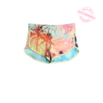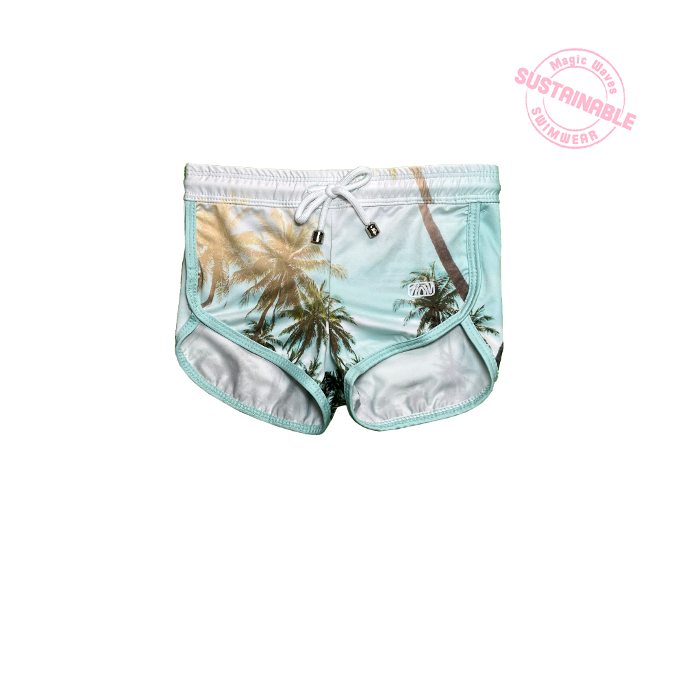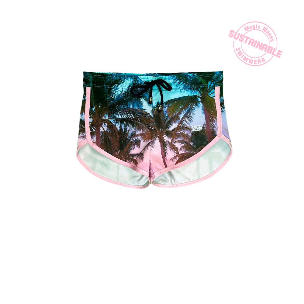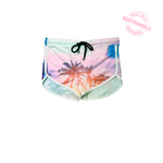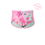 Shorts for girls with California-inspired sunset print. Perfect to accompany our swimsuits. Of course, also made with our textile made from recycled pet bottles and ready to hit the beach!