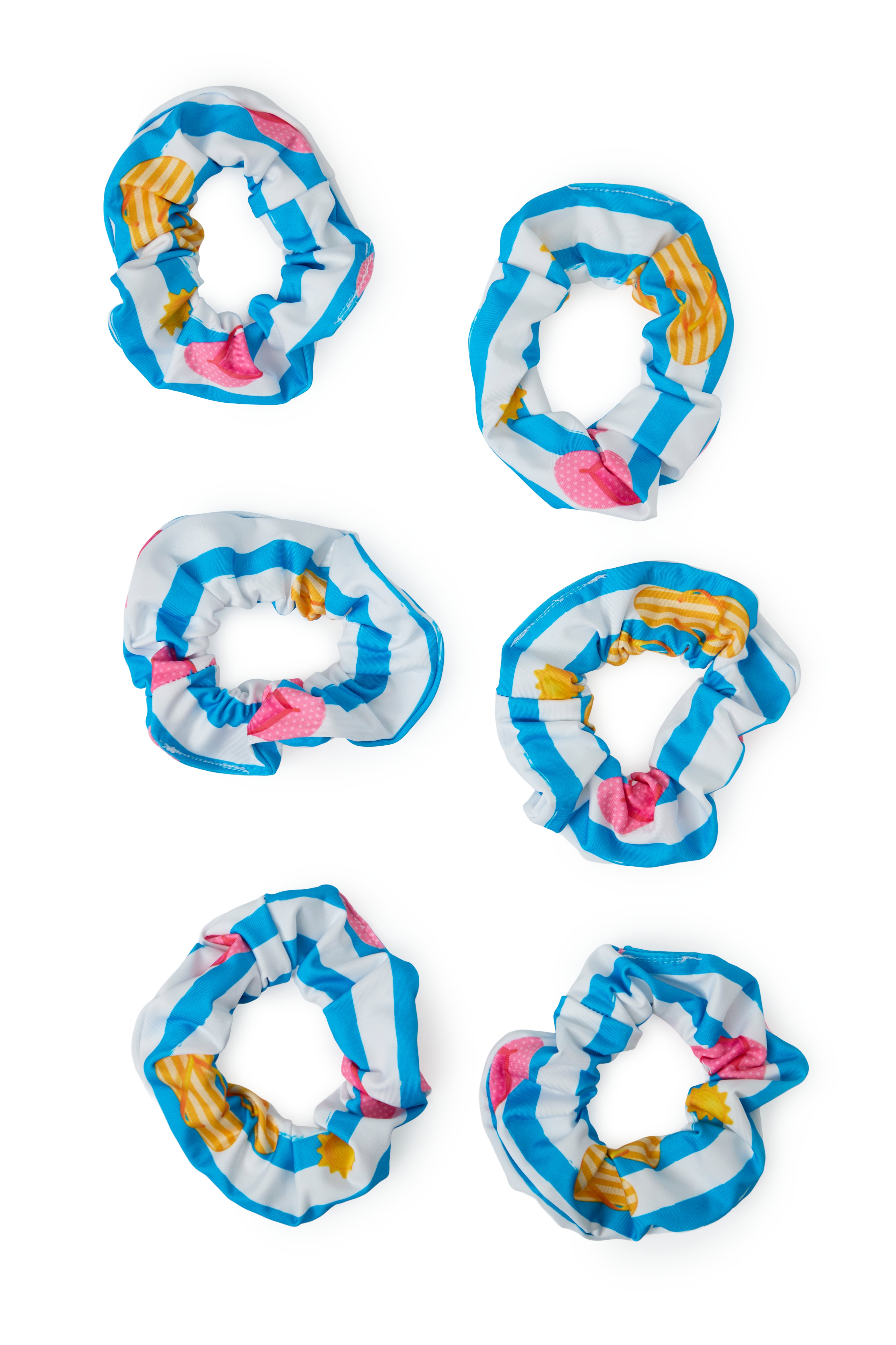 Scrunchies coloridos y divertidos diseñados especialmente para niñas. Perfectos para la playa y actividades al aire libre, estos accesorios mantienen el cabello seguro y cómodo sin causar daño. Con tonos vibrantes y alegres que las niñas adorarán, son resistentes al agua y cloro. Ideales para peinados playeros, deportes acuáticos y diversión garantizada bajo el sol.