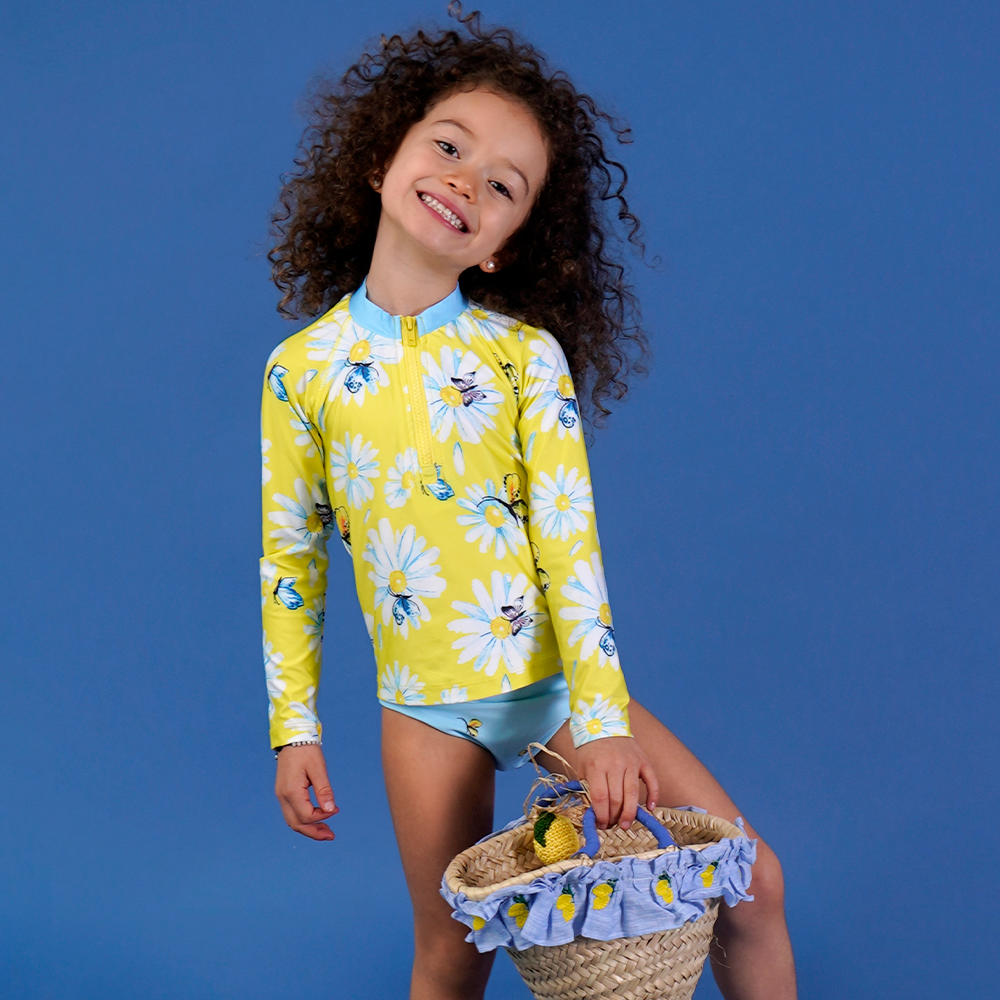 Nuestro traje de baño de dos piezas para niñas BAHAMAS ahora se renueva con estampados inspirados en océanos y flores, llenos de vida y color, ideales para acompañar a las pequeñas en sus días de sol y diversión. Con bikini a juego, cuenta con un práctico cierre frontal. Fabricado con textil a base de botellas de PET reciclado, es perfecto para disfrutar de la playa al máximo.