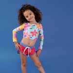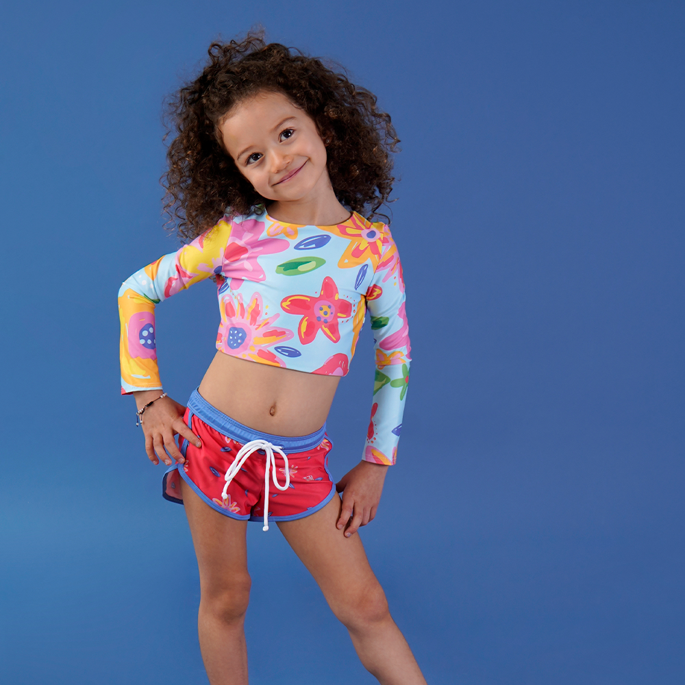 El short para niñas LA PAZ es la opción ideal para usar como salida sobre el traje de baño, combinando comodidad y estilo. Con estampados inspirados en el océano y la naturaleza, este short es perfecto para esos días de playa o piscina. Hecho con tela reciclada a partir de botellas de PET, ofrece una opción práctica y sostenible para disfrutar del verano con total libertad.