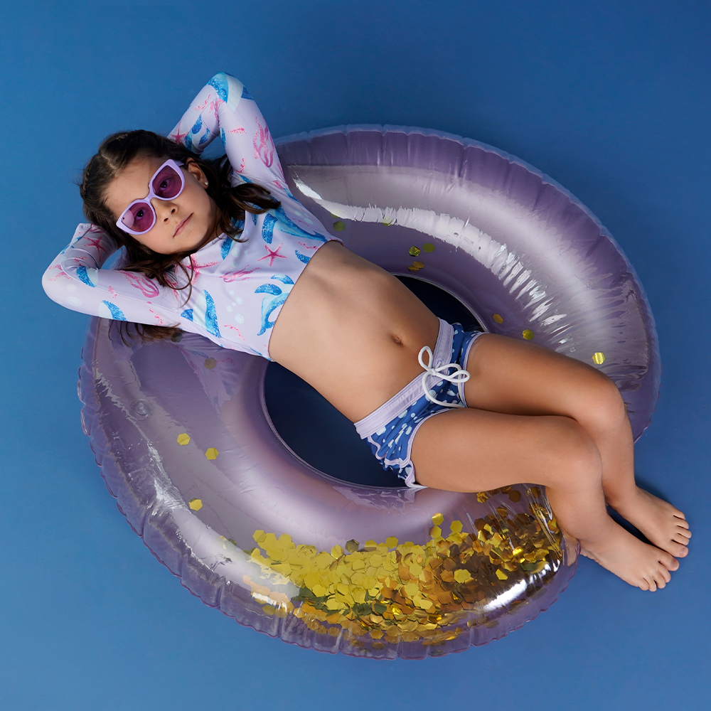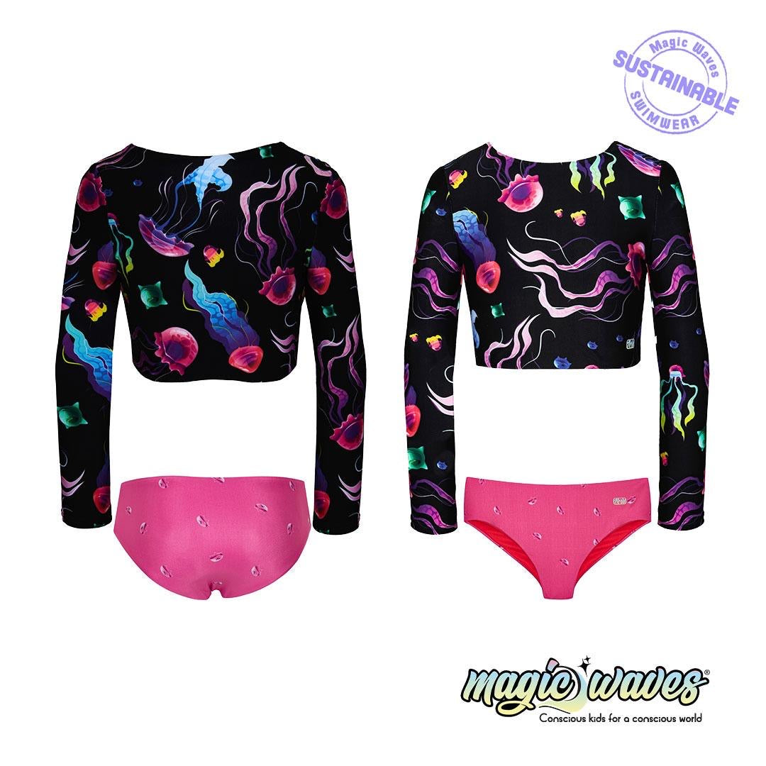 El nuevo traje de baño de dos piezas MILOS ofrece un estilo fresco y divertido, con estampados que fusionan lo mejor del océano y la naturaleza. La parte superior tipo crop top añade un toque moderno y cómodo, ideal para disfrutar de los días de sol con total libertad. Confeccionado a partir de textiles reciclados de botellas de PET, es una opción sostenible que combina estilo y conciencia ambiental.
