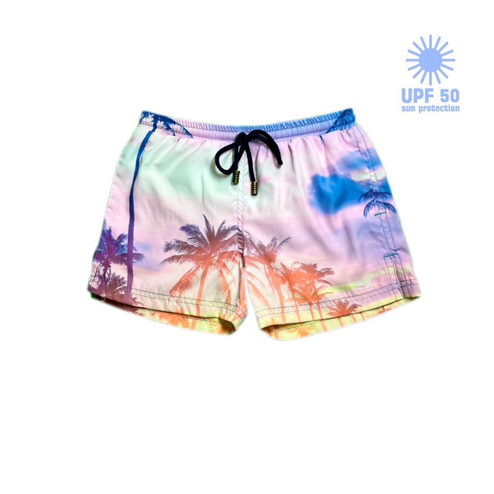 Traje de baño para hombre con gráficos de nuestra colección de Cali Vibes en vibrantes colores para que los combinar con los niños y naden con estilo.